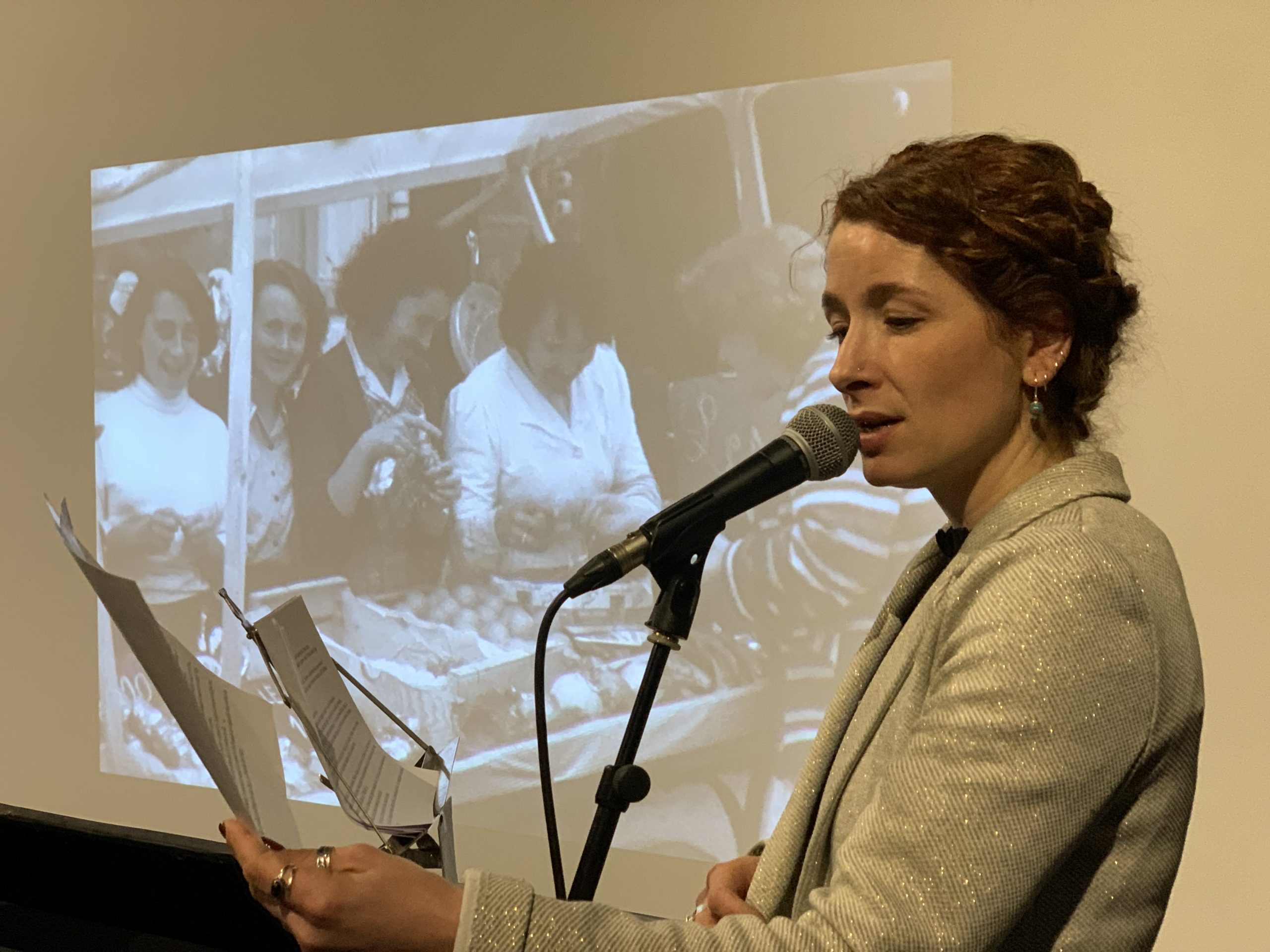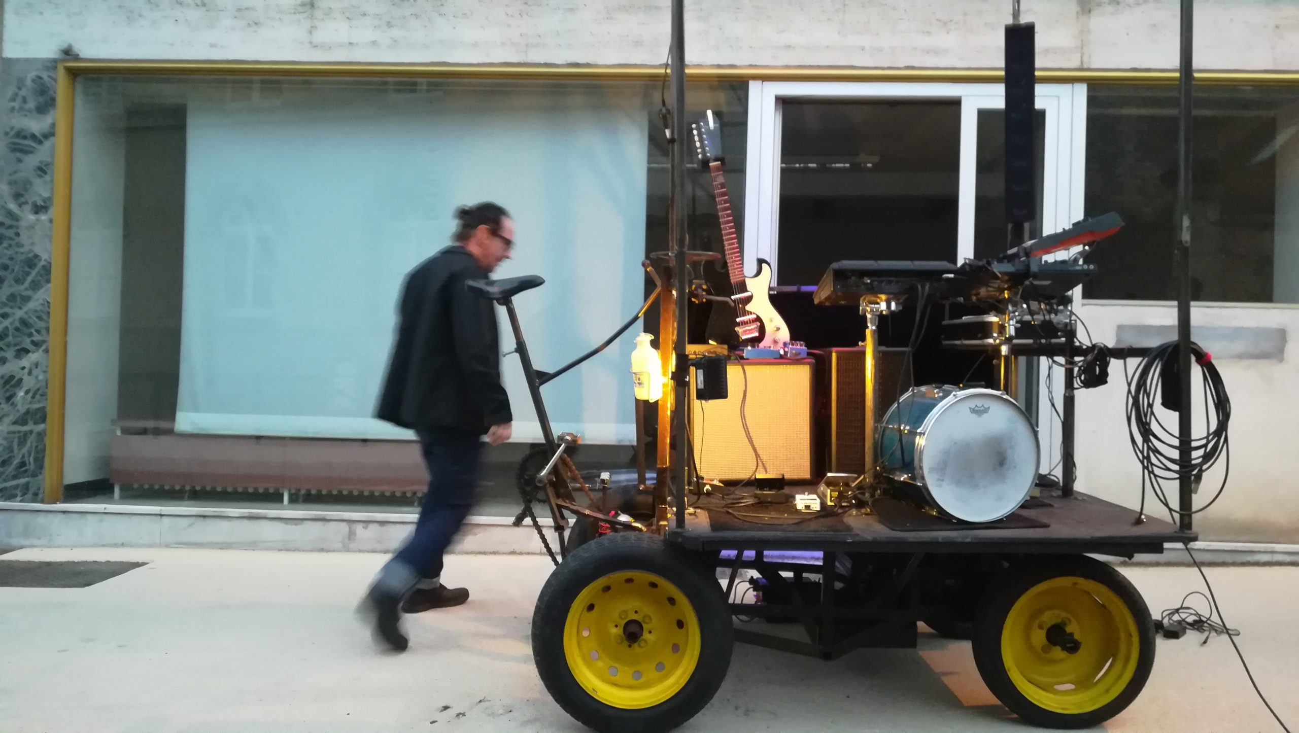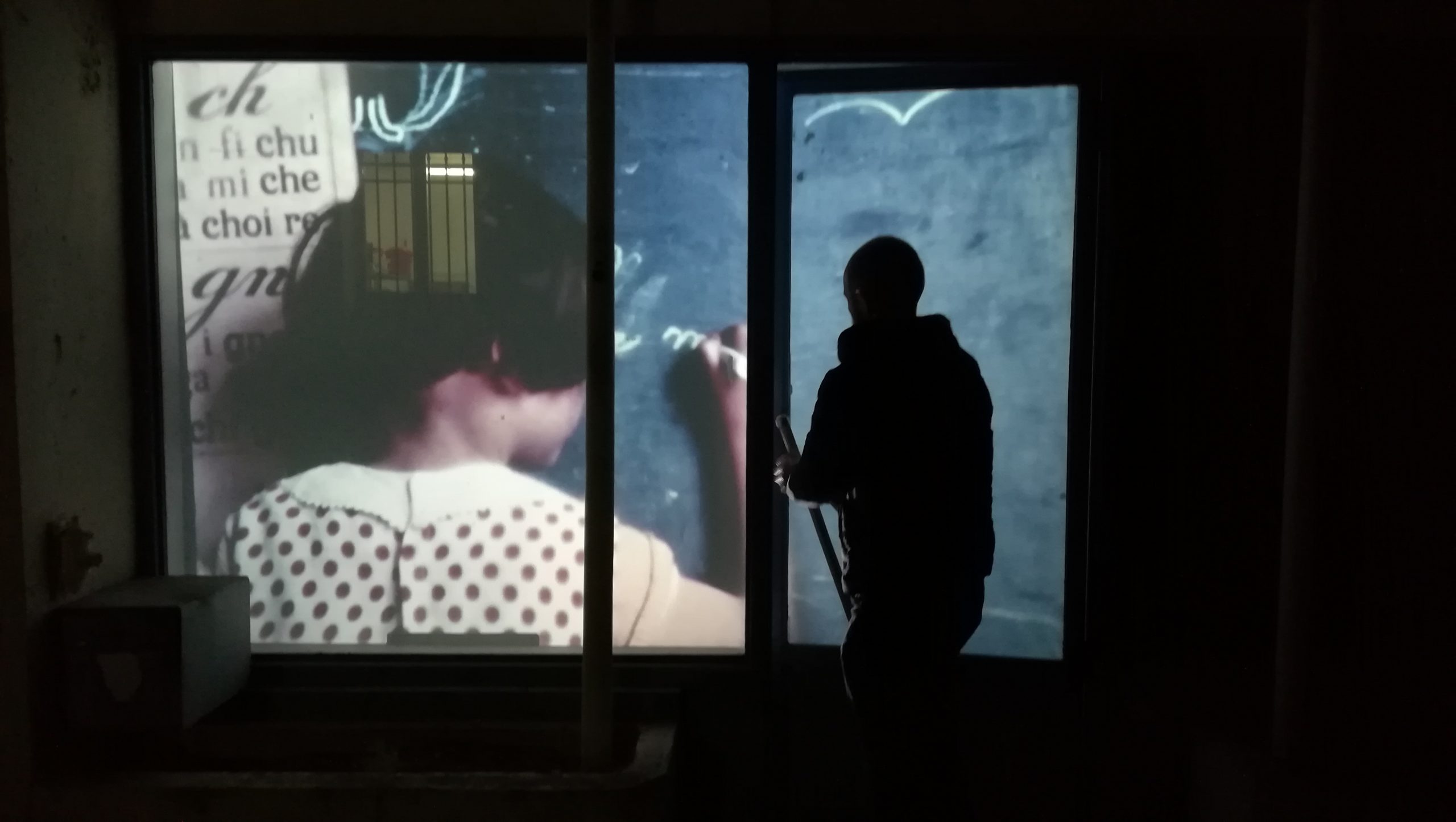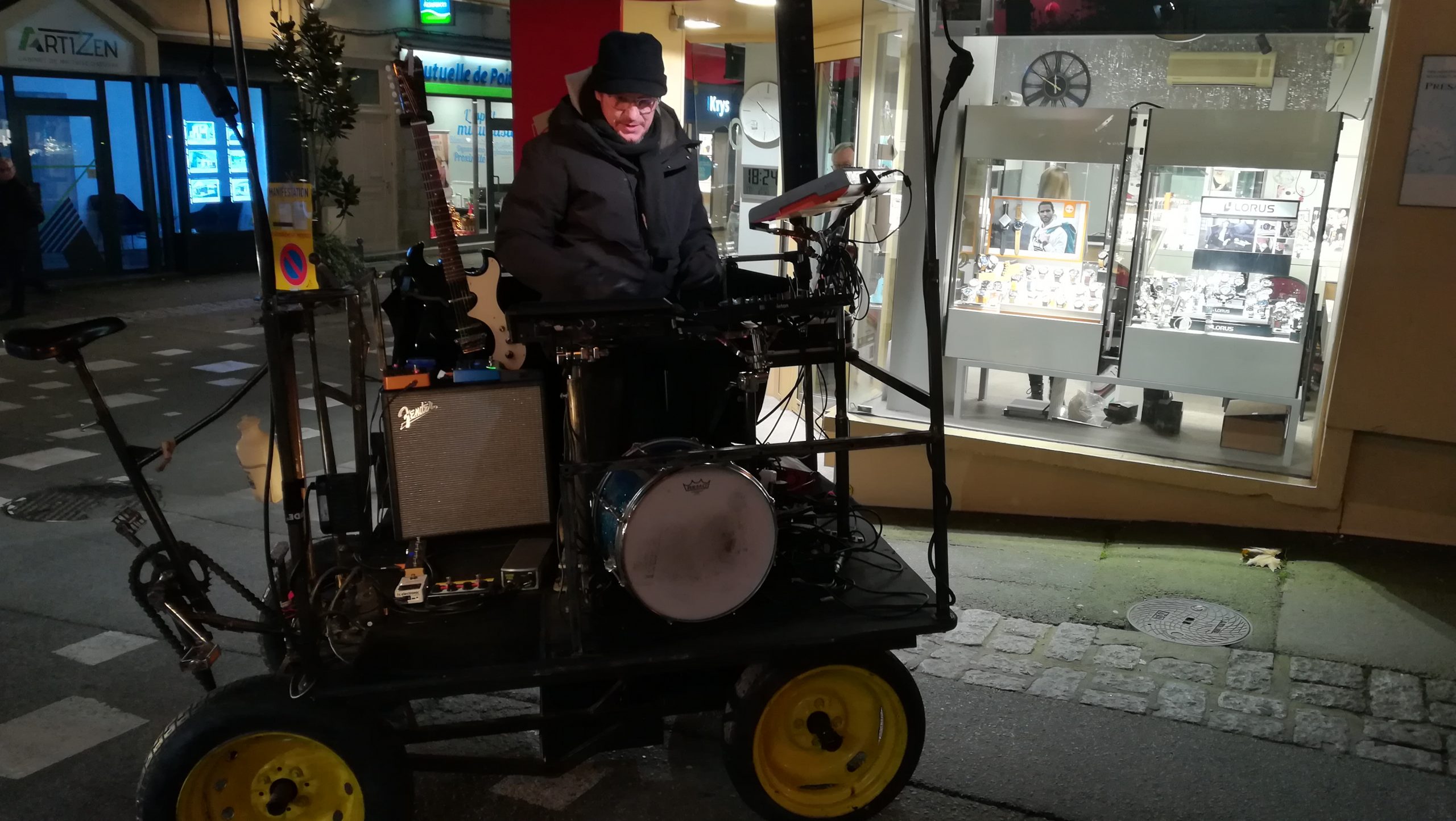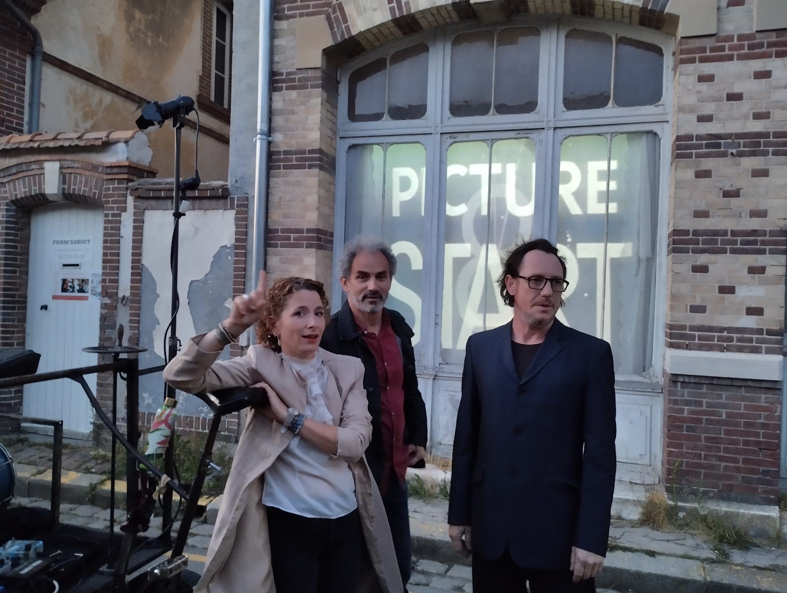 À travers les rues, le public déambule, guidé par un délégué au patrimoine de la cinémathèque régionale, accompagné d’un musicien sur une scène mobile et d’une comédienne, pour une plongée dans ces mémoires filmées, projetées dans des vitrines de magasins aujourd’hui à l’abandon.