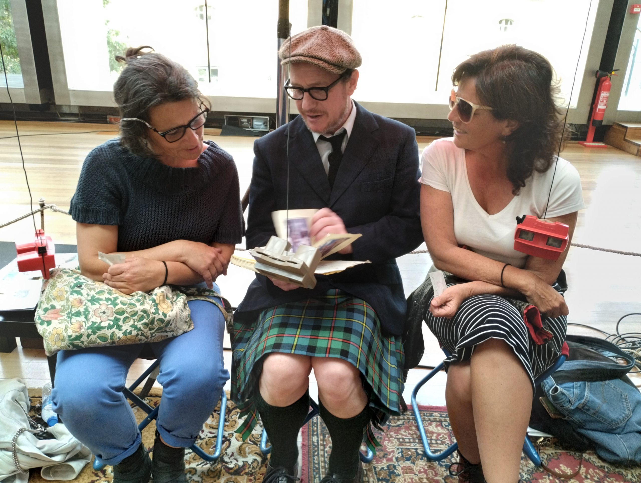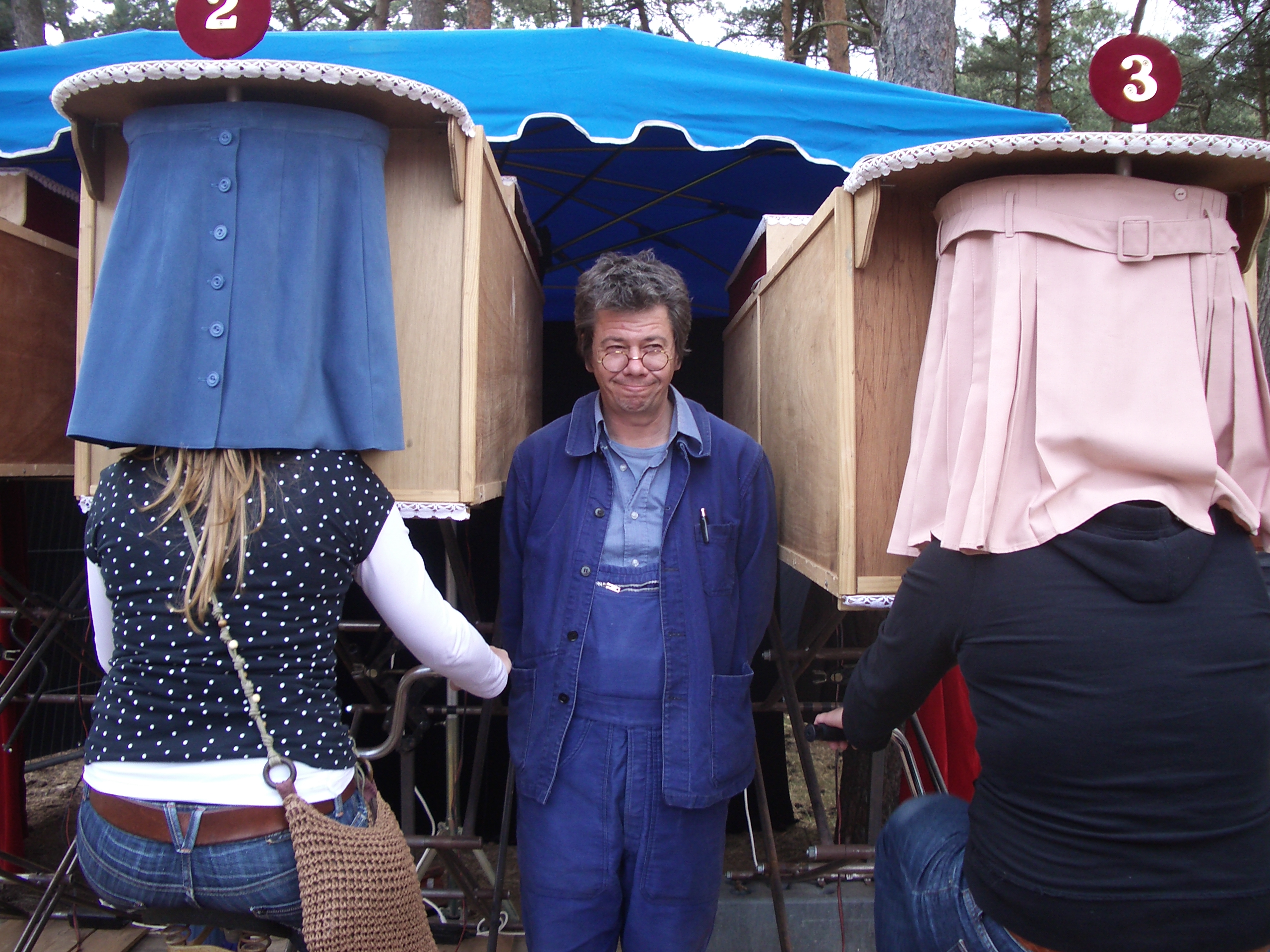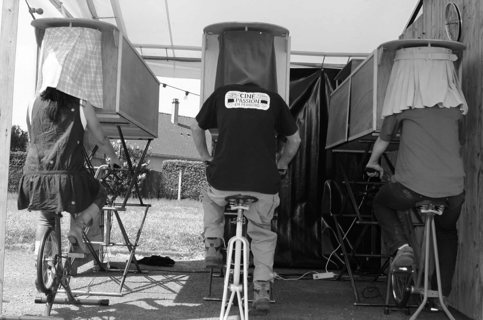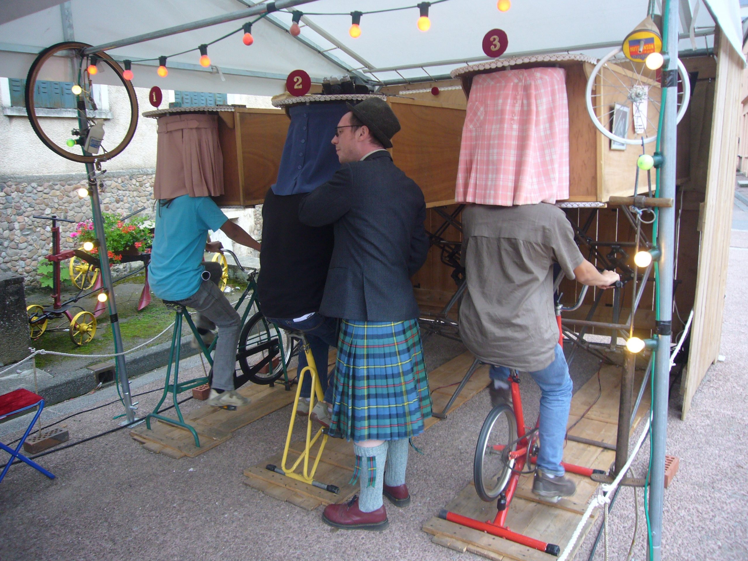 Une attraction foraine pour…1 spectateur(trice) et une file d’impatient(e)s passionné(e)s de bicyclette et d’humour mécanique, avec 3 cabines individuelles de projection de films vintage coquins en Super 8. Une invention digne d’un prix au fameux “concours Lépine”.